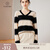 帕什 羊绒衫女100%山羊绒秋冬V领单纱宽松条纹针织毛衣 TY-3134 青绒+黑 均码