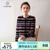帕什羊绒衫女开衫25秋冬新款圆领加厚条纹针织毛衣外套MC-2539 黑色 M